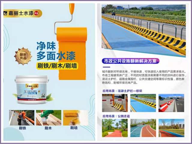 嘉麗士多面水漆,凈味環(huán)保、底面合一、遮蓋力好、可調(diào)千色、耐候耐水性能優(yōu)異,能在金屬面、木飾面、混凝土、墻面、PVC管道面等不同材質(zhì)表面上進(jìn)行施工,可以輕松滿(mǎn)足城市更新改造的各項(xiàng)需求。