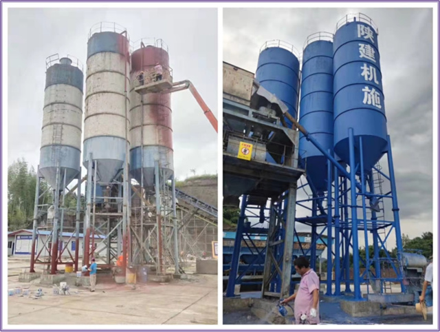 攪拌罐翻新前顏色暗淡、顯舊,涂刷后色彩艷麗,煥然一新